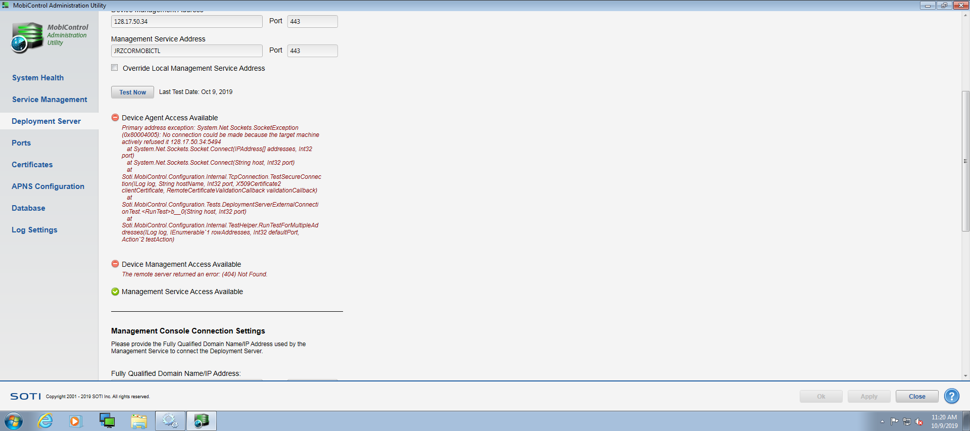 Hi, I installed SOTI v13.4, I am getting Target Machine Actively Refuse.