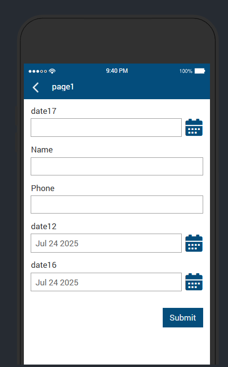 Currently I have the date picker for the current date on my only form "MainForm" on one page with a lot of other fields like text inputs and check box inputs and one other date picker (used for an optional date for a contact wish).