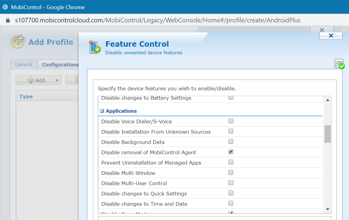 On Lockdown We are Getting a Notification that allows users to uninstall the MobiControl Application