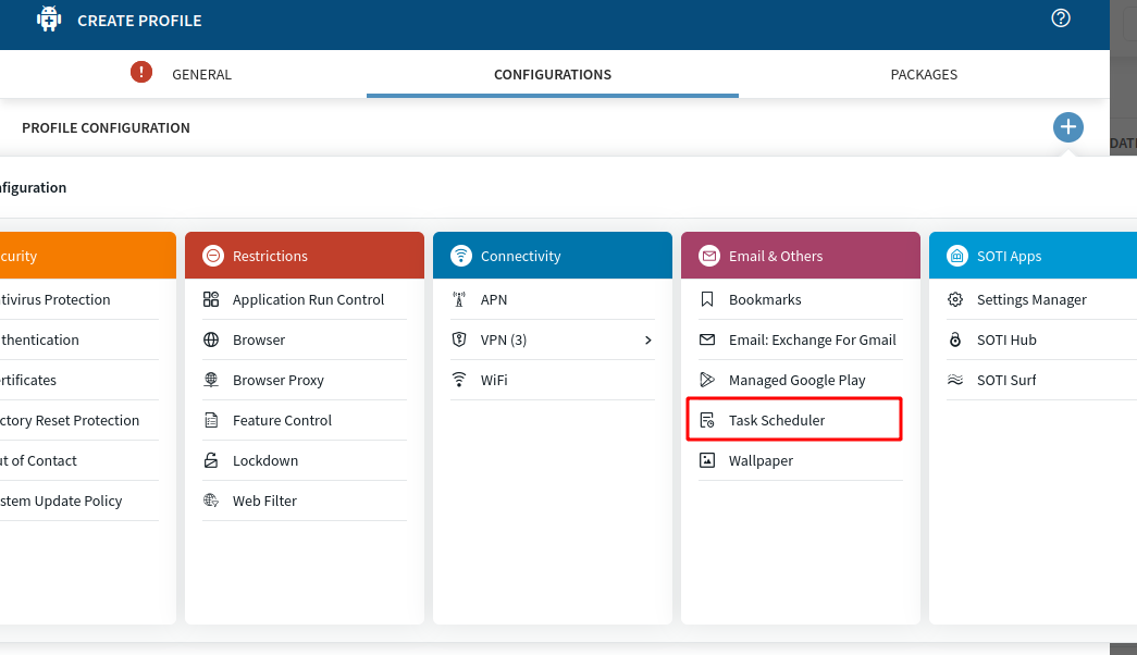 You can find the task scheduler when you create a android profile.