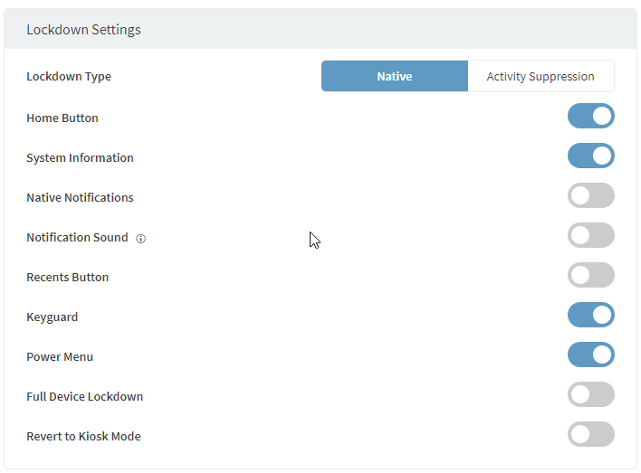 Using the lockdown type "Activity Suppression" is not an option, because there are simply too many functions enabled that should not be enabled.