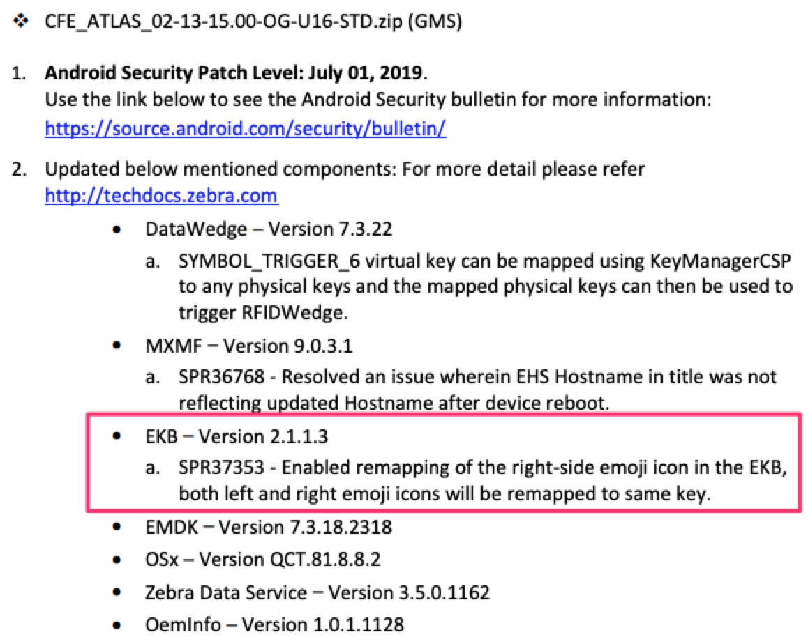 Zebra devices? If so, you can upgrade to a newer LG with a newer EKB version.