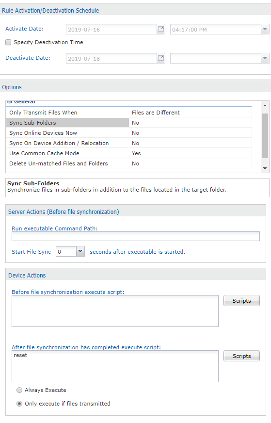 My question, when the files Sync Rule execute and the files already exist are no difference, does the Sync Rule Execute the Script?