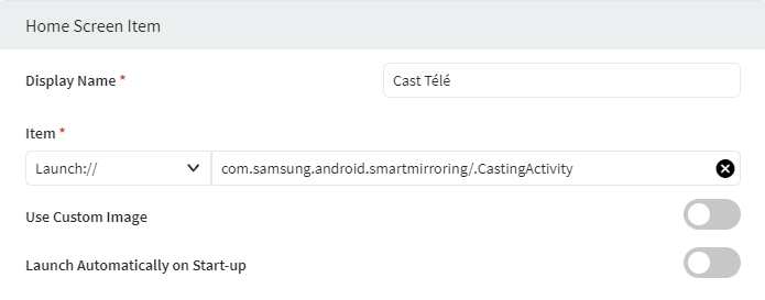 I try with Launch://com.samsung.android.smartmirroring but I have this message : "Package not found".