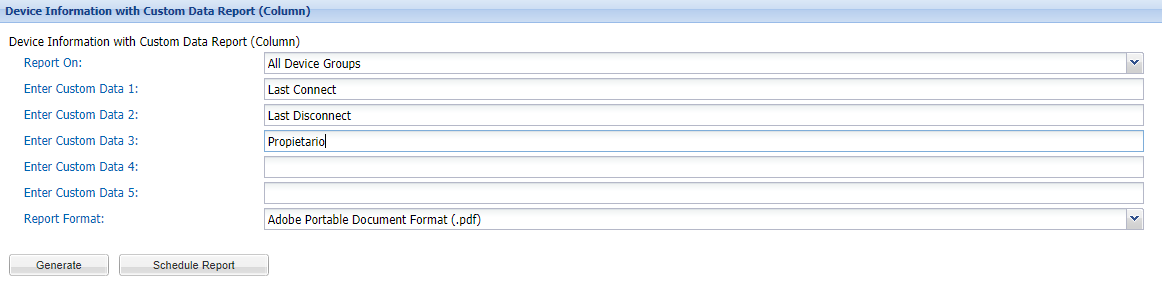 When I create a report with the option "Device Information with Custom Data Report (Column)