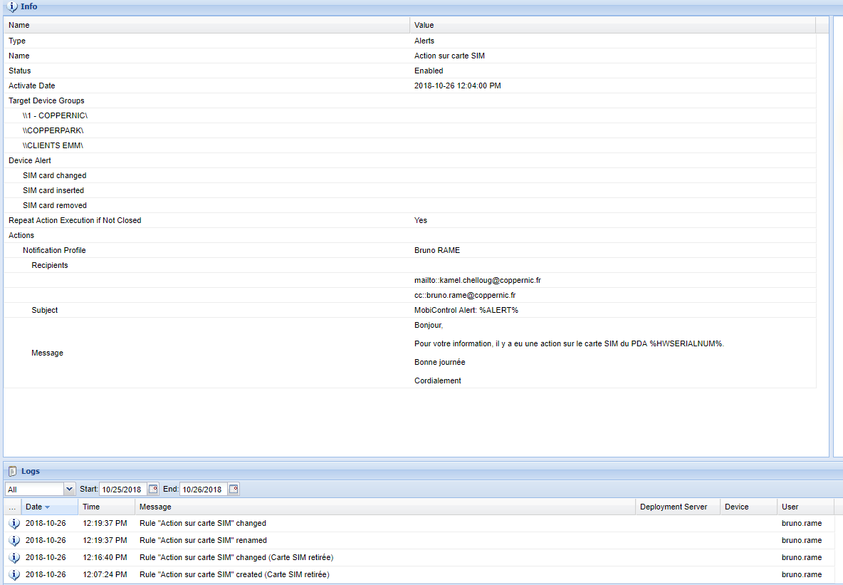 I created a rule to alert by email that the sim card has been changed, removed or inserted.