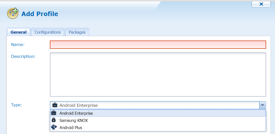 If you use OEM specific Android+ device agent, you need to use Android+ profiles, while Android-Enterprise profiles are needed if generic (i.e. non OEM specific) Android-Enterprise device agent is used.