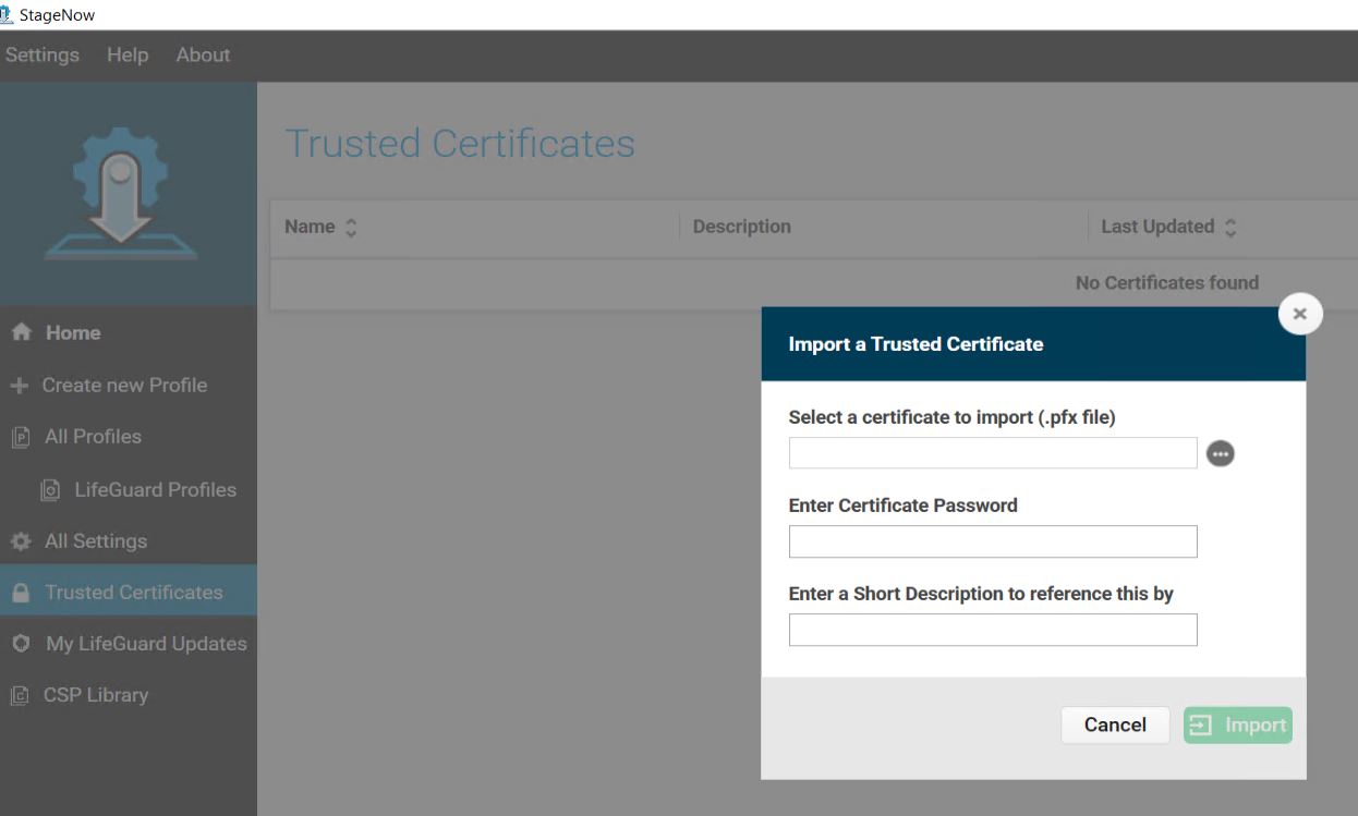 2) I have exported the root.cer from the mobicontrol admin utility, is that correct to import here?