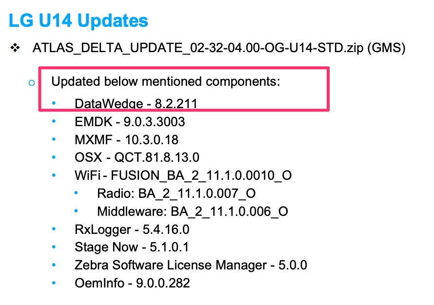 TC57 - Android 8.1.0 - DataWedge 7.2.5