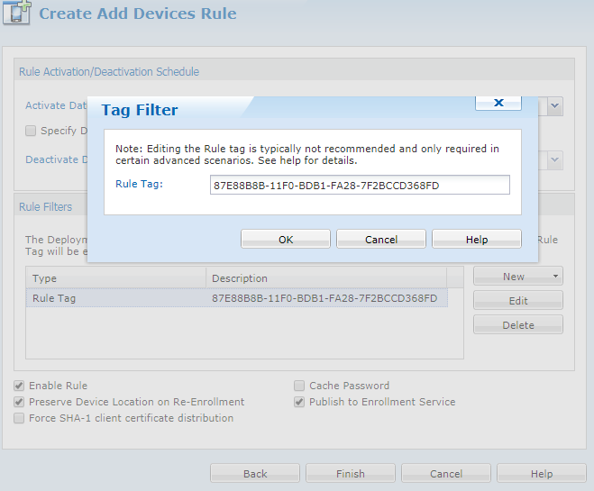 I've created a new add device rule and assigned the tag ID I've mentioned.