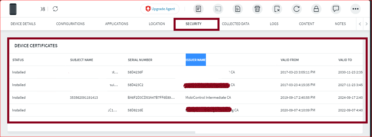 the certificate does not seem to exist within the certificate store on the Soti Deployment or management server and is also not mentioned within the administration Utility under certificates (the others are)