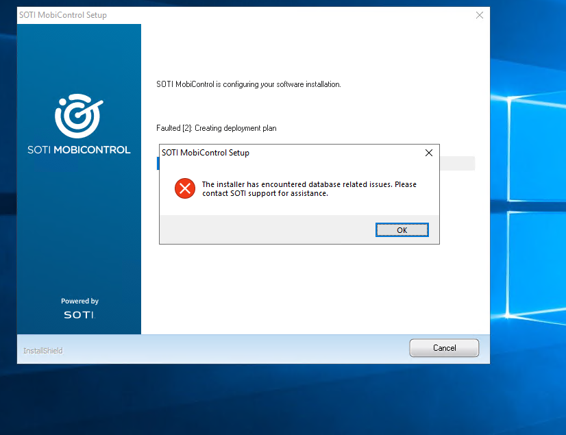 When installing SOTI MobiControl, you must be either a SysAdmin or a DbCreator with additional ALTER ANY LOGIN permissions. When upgrading SOTI MobiControl, you must also have ALTER DATABASE permissions.