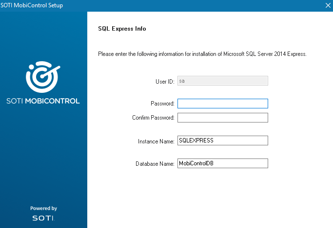 If possible, use an SA account for authentication. SA user accounts contain the right set of permissions to guarantee the proper functionality of SOTI MobiControl services. These credentials are not stored by SOTI MobiControl so store them in a safe place that is available to your organization.