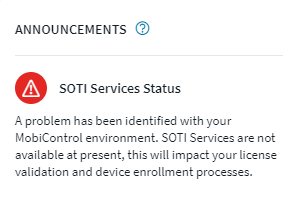 A problem has been identified with your MobiControl environment. SOTI services are not available at present.
