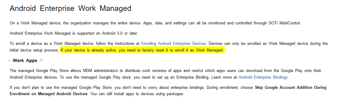 Android 10 device are not registering as enterprise work managed.
