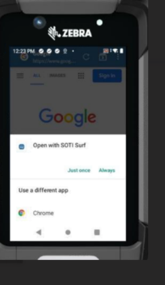 3.Is SOTI Surf added as your default browser? Please make sure that none of the browser is selected as default. This will lead you to a prompt as shown in the screenshot below. Please select Just once option and note down the behavior.