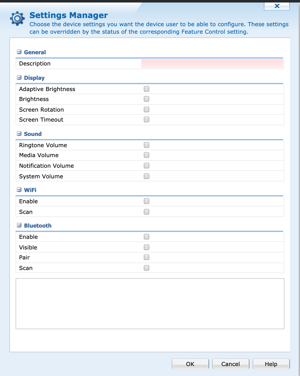 I'm able to disable the settings I don't want user to turn on with feature control, but I cant find a way to allow users to change the brightness and rotation settings while at the same time not allowing them to turn off the wifi.