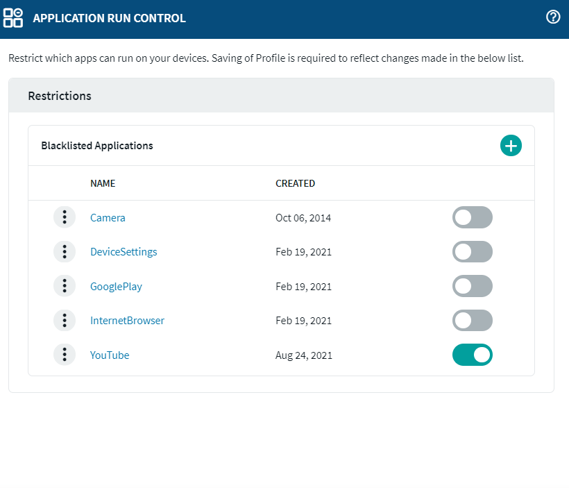 Does the MobiControl application-run-control profile works for apps other than Youtube on your Zebra device? What about on other device model(s) enrolled onto your MobiControl server?