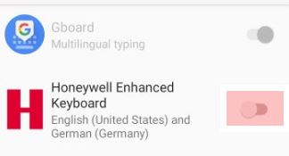 We therefore have to deactivate the Honeywell keyboard in the settings on the device which will enable the Gboard