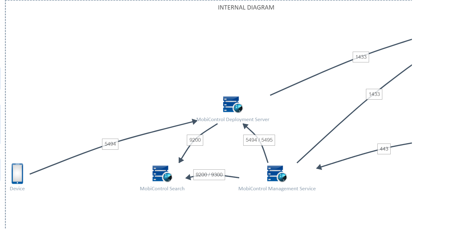 Please find the network diagram that explain communication on different ports with devices and Deployment server and other services