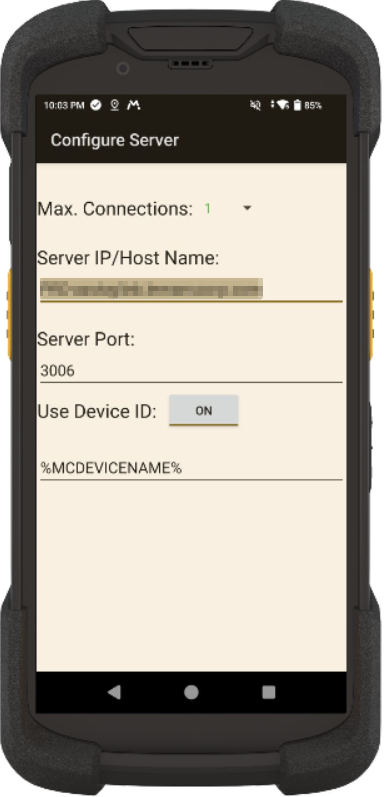 The result is "%MCDEVICENAME%" populating the field within the application.