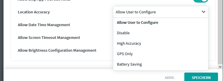 They also should still be able to turn off and on the location on smartphone and not completely block it through mobicontrol, because if I use "GPS only" they can not turn it off on the smartphone.