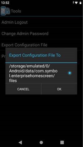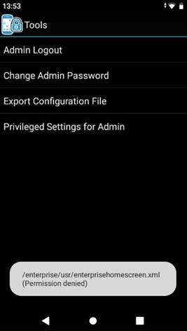 It is not possible to make an export (when APK is installed through MobiControl), see screenshots below:
