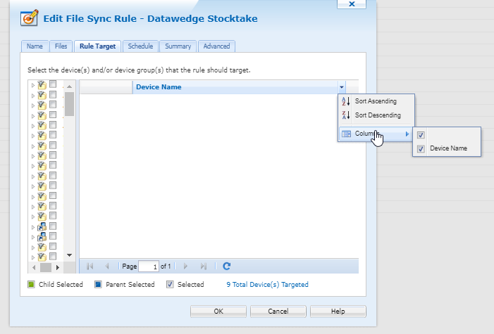 How do we get more columns here within the File Sync Rule – Rule Target?