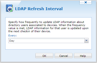 The default LDAP Refresh Interval for MobiControl is set to sync every day. This option can be changed in Global Settings under "LDAP Refresh Interval".