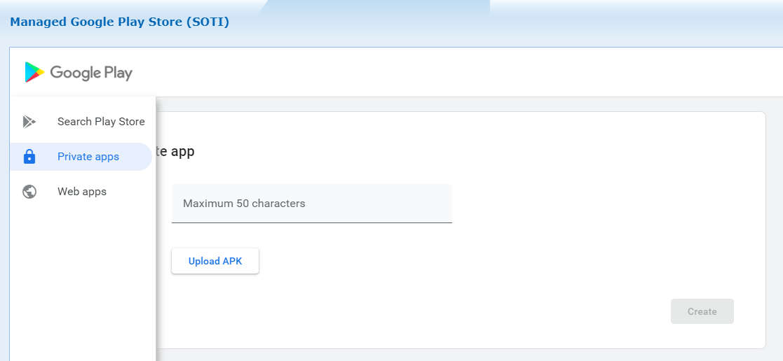 I would recommend using the Package builder to encapsulate the APK and install it via Profile to the device. This bypasses the Play Store architecture completely and allows you to install the APK directly onto the device from SOTI since their DPC is set to DO.