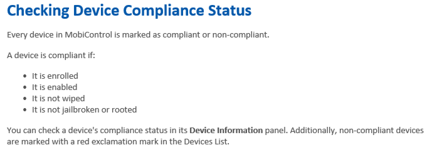 We recently downgraded a number of Zebra WT6000s running N back to L and re-enrolled the devices back into the same MobiControl instance as part of that process. The devices were not deleted from the inventory during the process and seemed to, for the most part, reconnect to the MC server just fine. There are a portion of the devices however that are showing up in a Non-Compliant status which is now seemingly preventing them from receiving their full configuration.