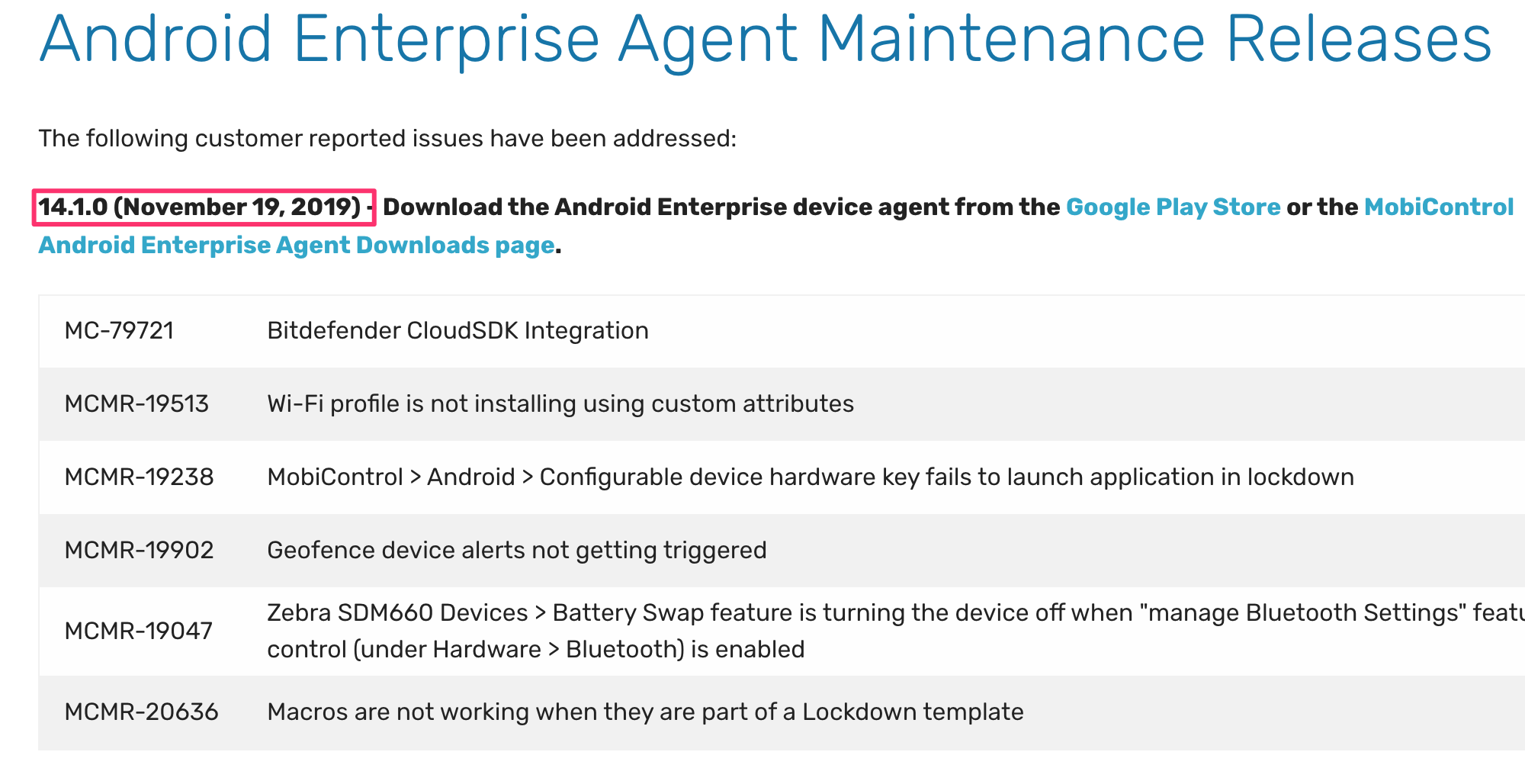 | MC-66636 | Added support for the kill_application script command on Android Enterprise managed devices that leverage the SOTI plugin. |