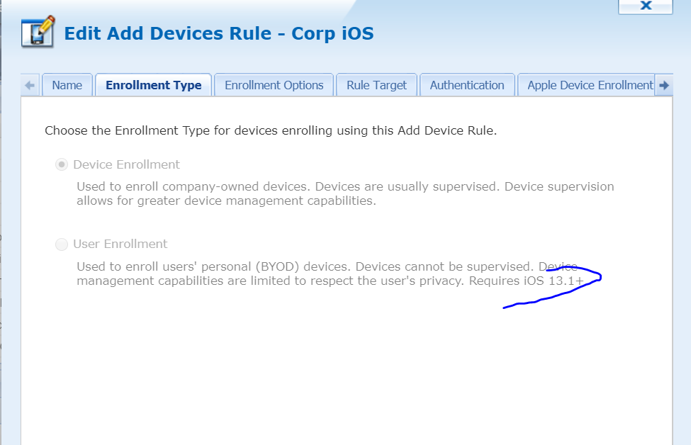 I have followed the steps to enroll an apple BYOD device but get the following error when I try to connect using the url on the apple device. Including setting up the apple push notification service and setting up the rule appropriately.