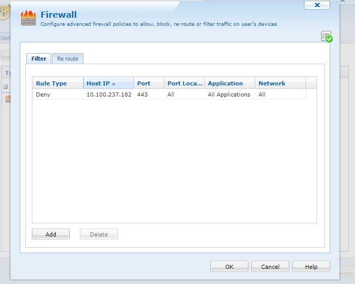 Based on your device firmware and agent/server server versions, firewall profile should be supported.