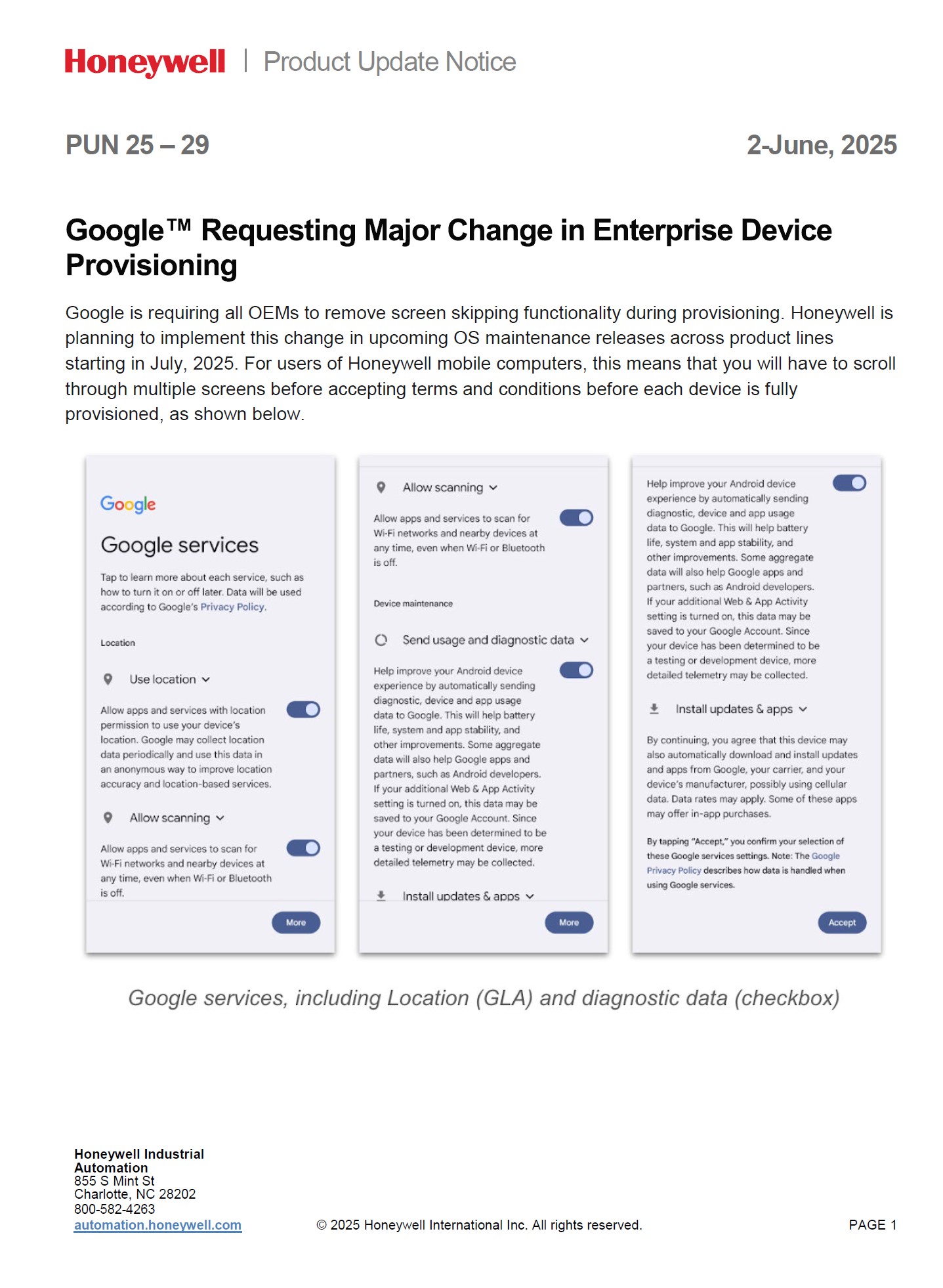 " The Google Android™ Enterprise team is aware that Android GMS devices may be configured to reduce the time taken to complete the Google setup wizard when provisioning a large fleet of Android Enterprise devices. By skipping the Google setup screens, end users of the Android Enterprise devices may not have had the opportunity to individually review, accept, and/or acknowledge important notices, terms, and controls governing their use of Google services on the device; such as Google's Terms of Service, Privacy Policy, and the collection of usage and diagnostic data (which is initially enabled in setup). Per Google, this situation would also potentially violate the agreements between Google and all OEMs, such as Google Mobile Services (GMS) requirements."