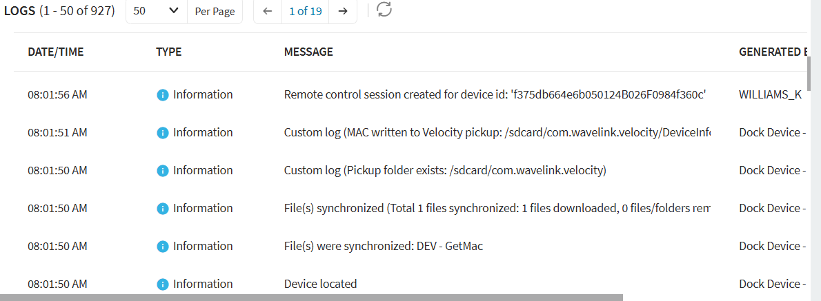 var folderPath = '/sdcard/com.wavelink.velocity'; var deviceMAC = mobicontrol.device.macAddress; // ----- Folder check with logging ----- var foldercheck = new mobicontrol.io.File(folderPath); if (foldercheck.exists) { mobicontrol.log.info('Folder exists'); } else { mobicontrol.log.info('Folder does not exist, writing folder to sdcard'); new mobicontrol.io.File(folderPath).createDirectory(); }
