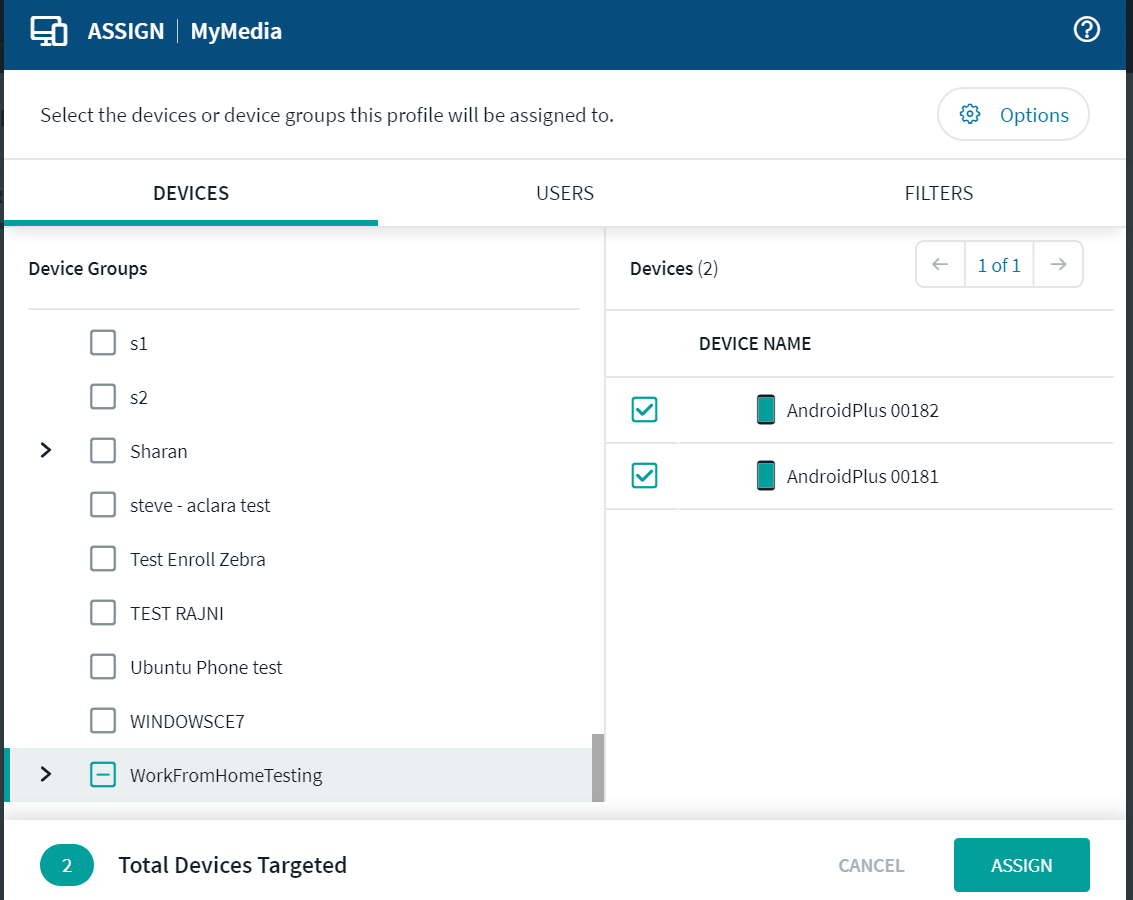 Note: You also have the option to filter and select the devices or device groups this profile will be assigned to.