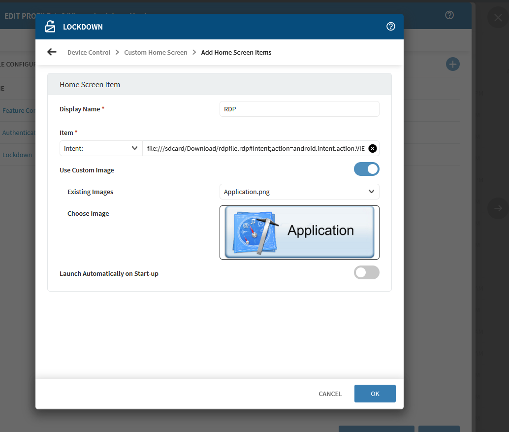 Is there an way to launch an RDP file from the lockdown screen. When I directly open it from the file explorer it is working.