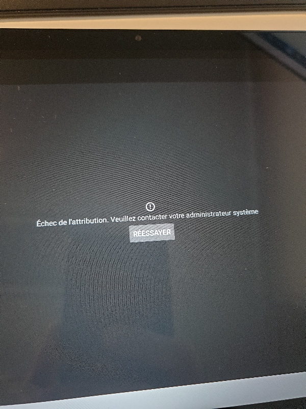On enrolment, the whole procedure seems to work, right up to the moment of registration: the registration ID I entered in the QR Code appears, but at the next stage, I get an error message on a black background: "Assignment failed. Please contact your system administrator" and underneath it a "Retry" button.