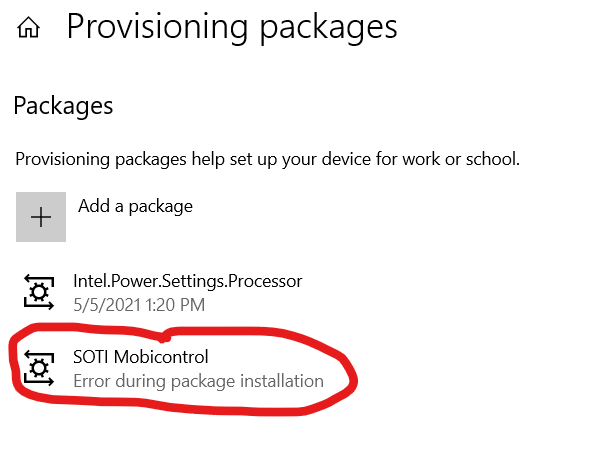 But you can click on Add or remove a provisioning package. There you should find the package.