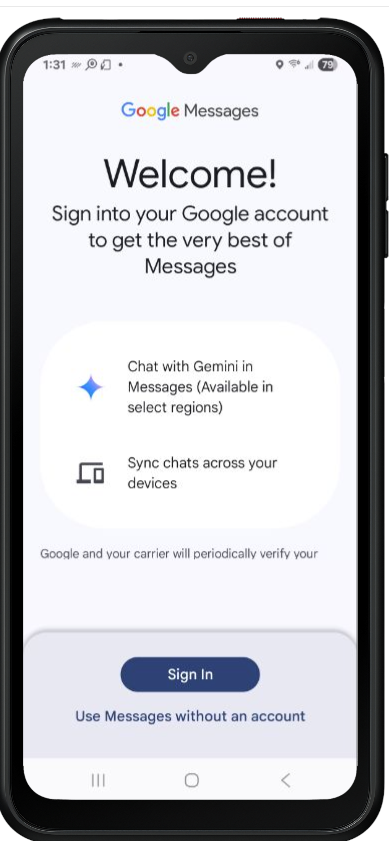 We need to update messaging app to new native Google Messages app, (current Samsung messaging app is prompting there is a update), but new message app is allowing for google sign in, can we disable this?