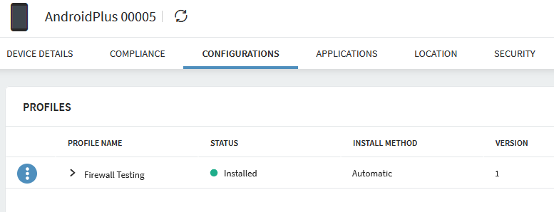 I am testing the firewall configuration in the Android Classic Profile, and I am having a problem with the cellular data restriction not applying correctly. I am testing by restricting all network traffic on both WIFI and Cellular for the google Chrome application. I have outlined the process I used below along with screenshots for reference