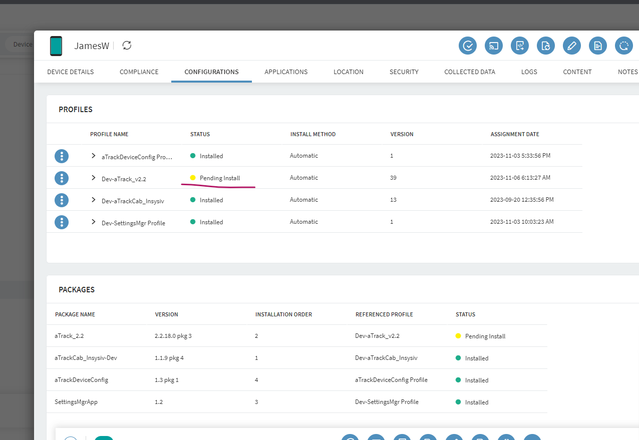 When new apk needs pushing to device, I upload the pcg file (from mcpkg studio) and assign it in the profile. Until just recently, the device would get updated within like 5min... Not anymore for some reason.