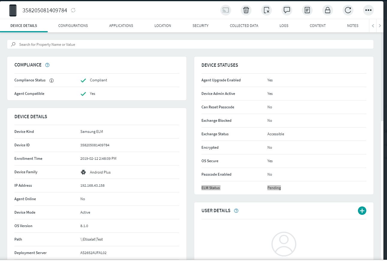 we are using Mobicontrol 14 and on one device property it is showing ELM pending . screen attached but on device no policy pending