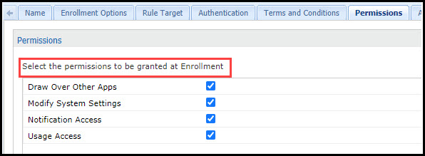 I have a selection of Add device rules set up and all have the Permissions set on the Rule like below: