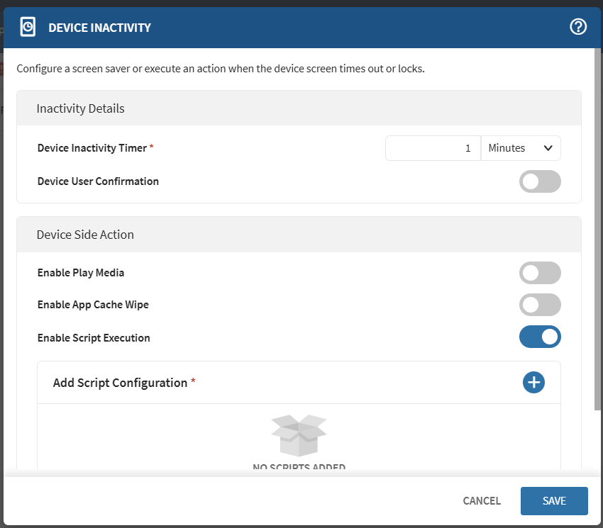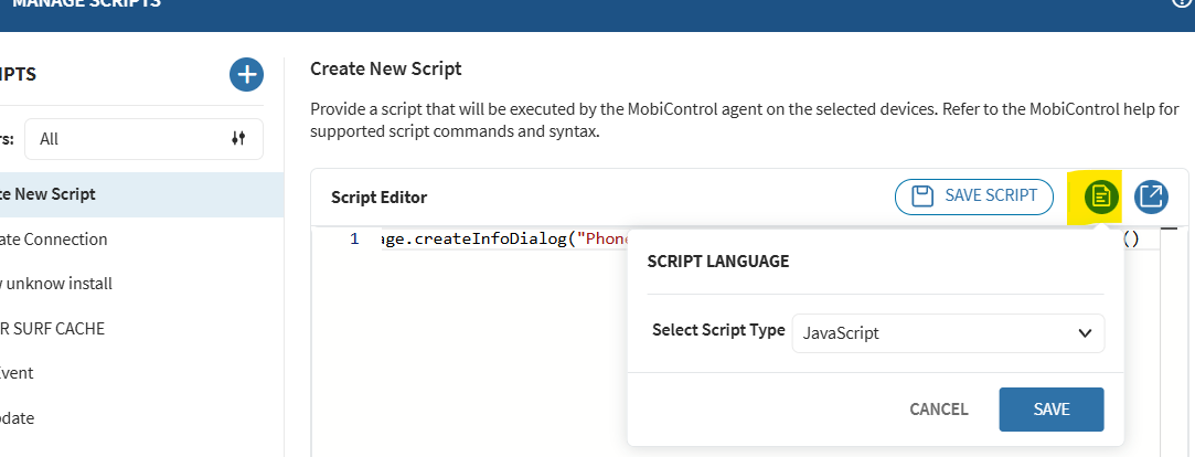 I've noticed that you can run scripts with the device inactivity option. I'm able to show a message to the device, but is it possible when they press a certain button there will be a action afterwards. I would like to close an app when pressing OK.. Could someone help me out?