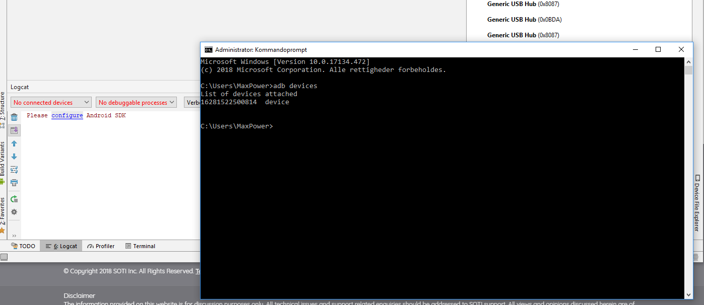 I am trying to do some troubleshooting on a TC75 in Android Studio. However despite that my Zebra device is actually connected on ADB, then it is not listed as a device in Android Studio (see attached screenshot).