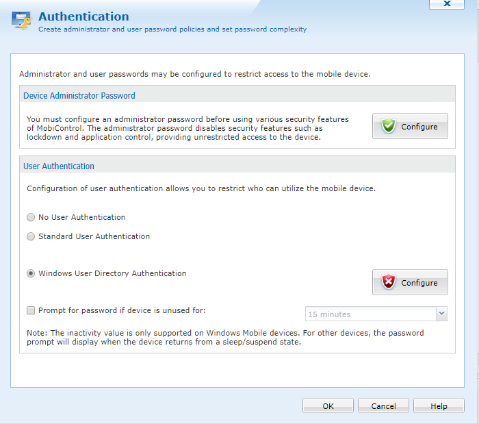 Logging in works but we have the option set to prompt for password after 10 minutes of non-use. This setting doesn't appear to work. After the user logs in and you leave the scan gun alone it never prompts for the password again. Removed all profiles (except wifi) with the same result.