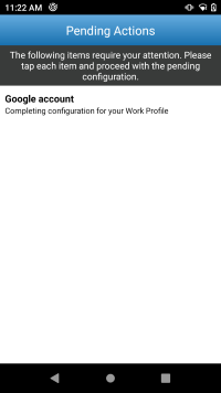 - At device show "Pending Actions" Google account Completing configuration for your Work Profile