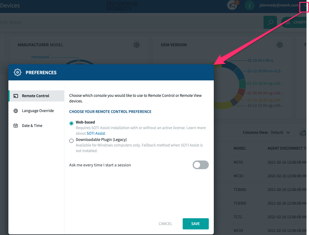 Hi, Mobicontrol Version: 15.2.3.1033 and with remote control legacy. I can't use remote control web-based.